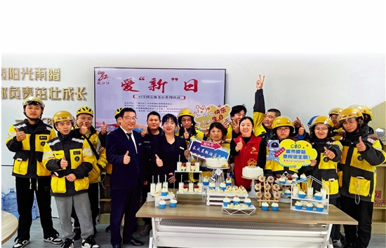 温州市瓯海区吹台社区党群服务中心组织小哥集体生日会。