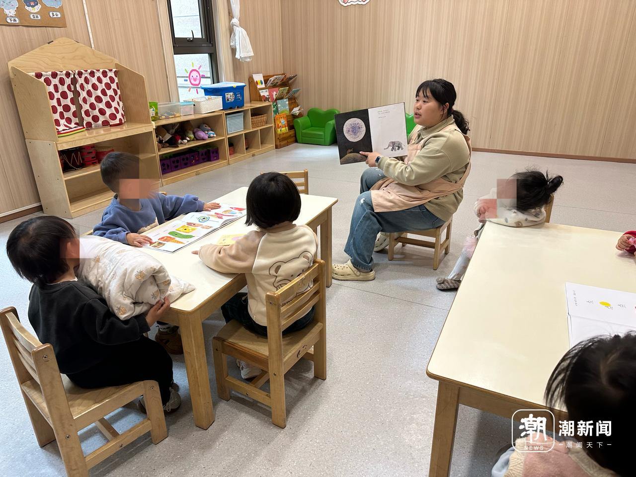 在益启橙长托育园,保育员为孩子们读绘本。王杭晨 摄