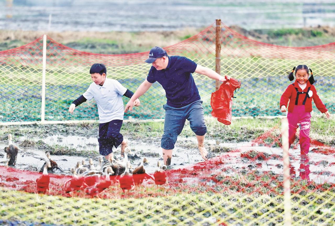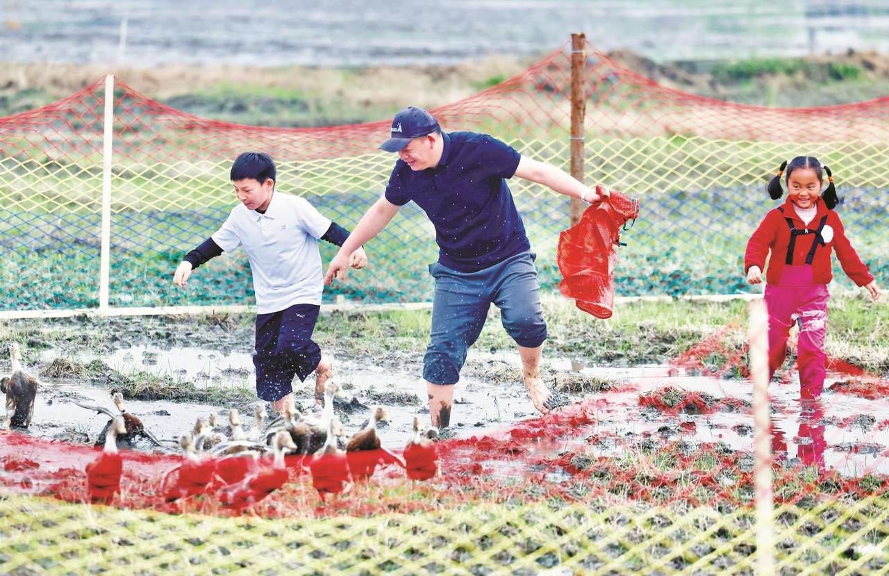 前天上午,鄞州区云龙镇陈黄村未来乡村的稻田边,云龙镇首届陈黄村春耕艺术节热闹开场。最热闹的环节还是稻田运动会,大人小孩玩得正酣。