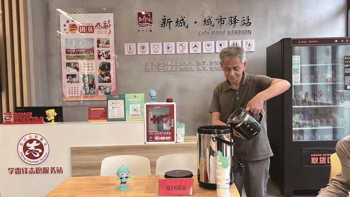 2024年夏天,他得知街道在江南摩尔新建工会爱心驿站,该驿站专门服务外卖骑手、快递员、配送员等新就业群体,便第一时间主动报名,再次扛起了守护驿站的责任。