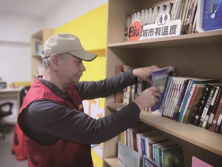每天早上9点前,顾自强准时出现在驿站,开窗通风、整理桌椅、摆放书籍、检查饮水设备,把一切收拾得井井有条;到了21点,等最后一位劳动者离开,他再仔细打扫卫生、关闭水电、锁好门窗,结束一天的值守。
