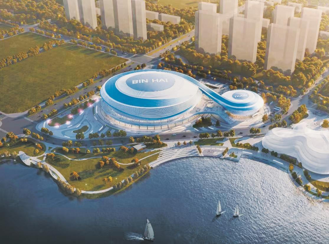 都市运动中心两座场馆建设齐头并进 滨海“玉如意”加速成型
