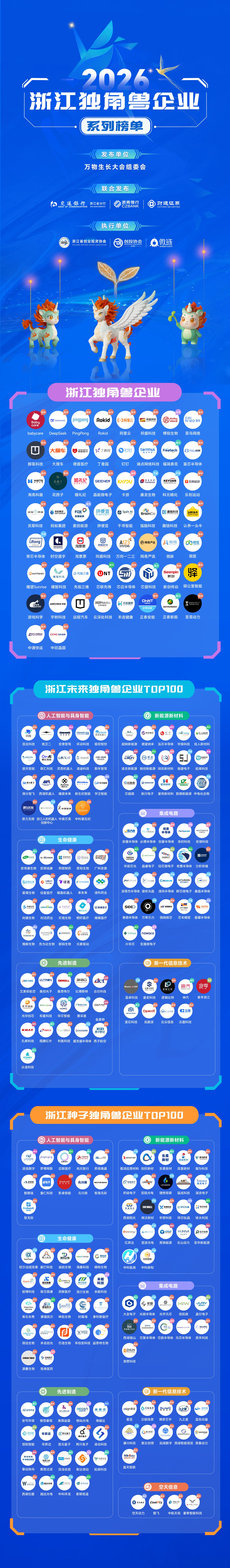 2026年,万物生长大会上发布浙江省独角兽企业系列榜单。
