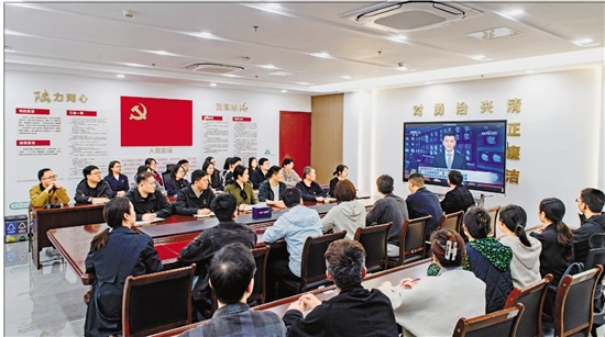 4月23日,义乌市党员干部收看《新闻联播》。 通讯员 王怿杰 摄