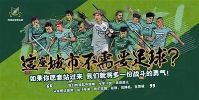 19年来,绿城足球走得艰难。海报底部也附有一份“自我介绍”:“我们的球队叫绿城,今年19岁,来自浙江,从未想过放弃,这19年来,我们在跑、在拼、在挣扎、在突破。”虽然绿城队已经从中超降到中甲,但仍有一大批死忠球迷坚守着、追随着。只是,和其他有足球队的城市相比,绿城队的受关注度和影响力实在是不高。