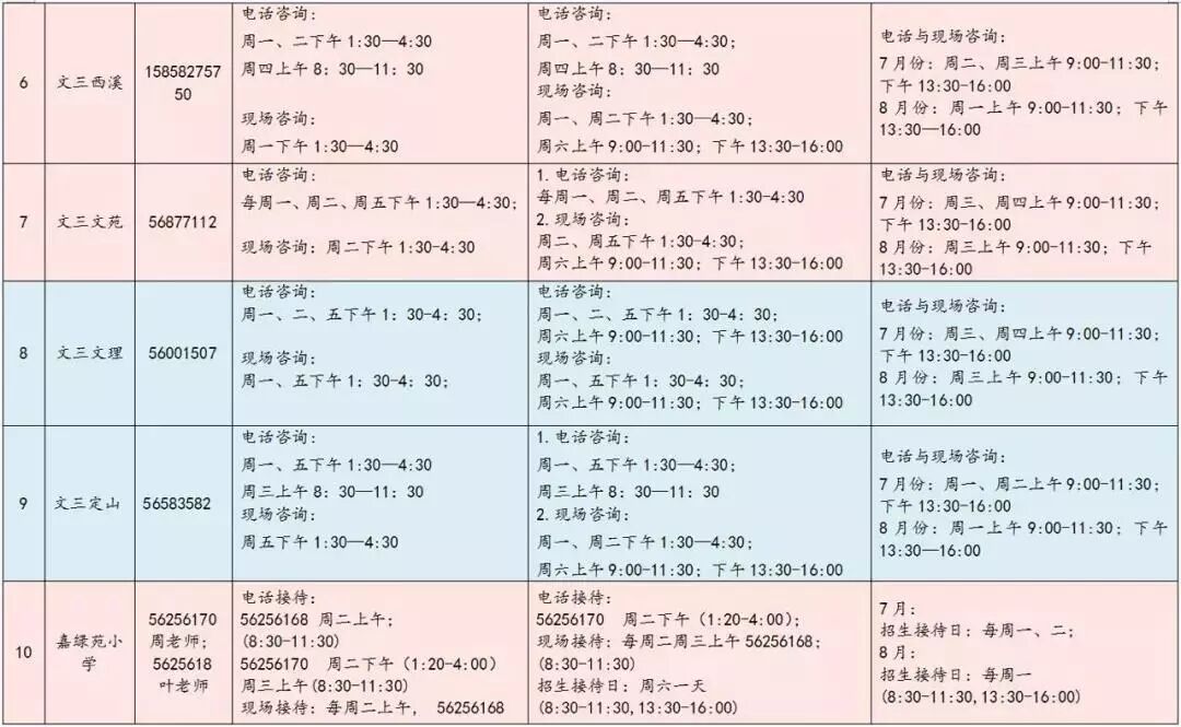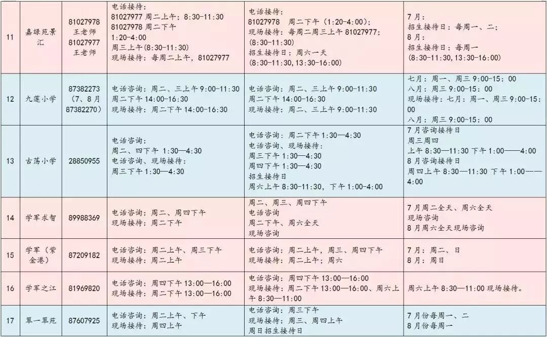 温馨提醒:①因各校接待咨询的教师同时有上课任务,如因上课期间无人接听电话,请稍后再拨。②请家长在学校安排的时间打电话或现场咨询。其他时间恕不接待哦,谢谢支持。