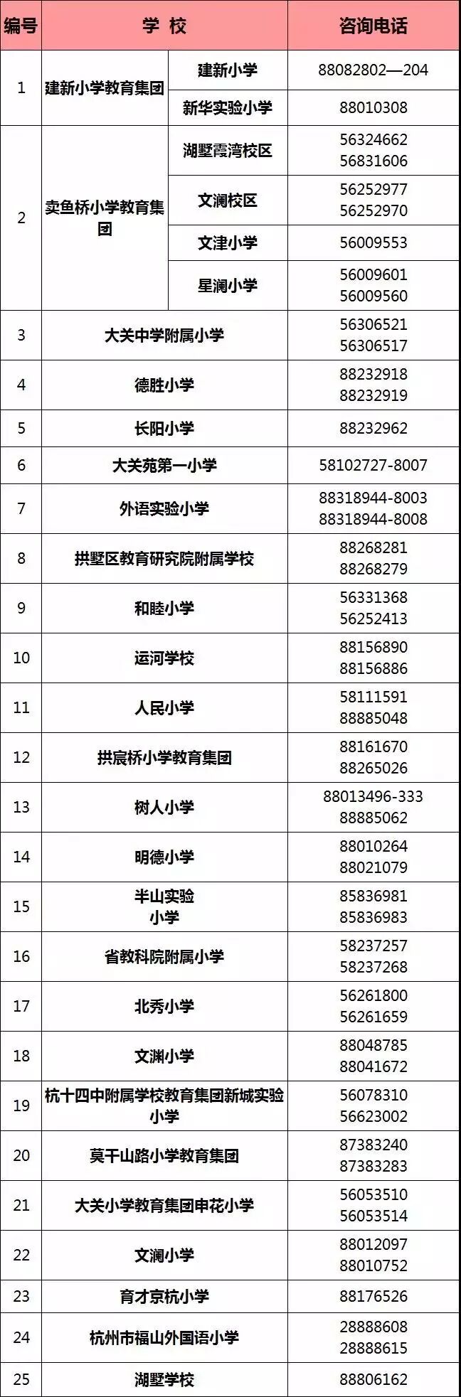 拱墅区教育局招生咨询电话:88259199、88259970、58237977