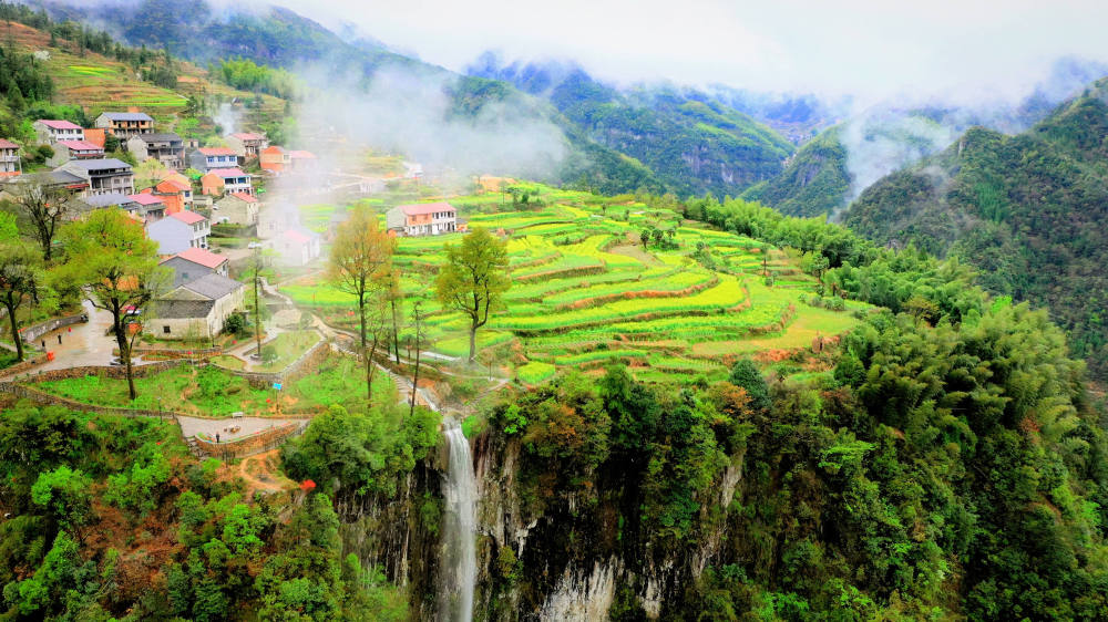 浙江省金华市磐安县的“悬崖村”。(磐安县委宣传部供图)