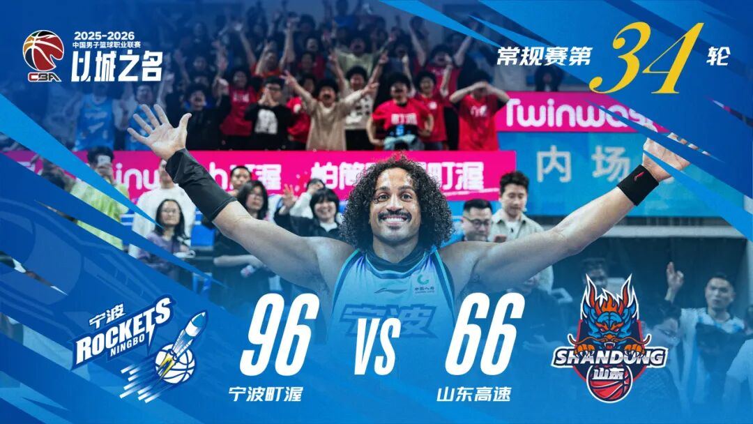 4月4日晚,CBA常规赛第34轮,宁波町渥坐镇主场以96比66狂胜山东高速,以30分的巨大优势完成了一场载入队史的胜利。这是宁波男篮进入CBA以来首次击败山东队,此前双方13次交手,宁波全部告负,堪称球队队史最大的“克星魔咒”。