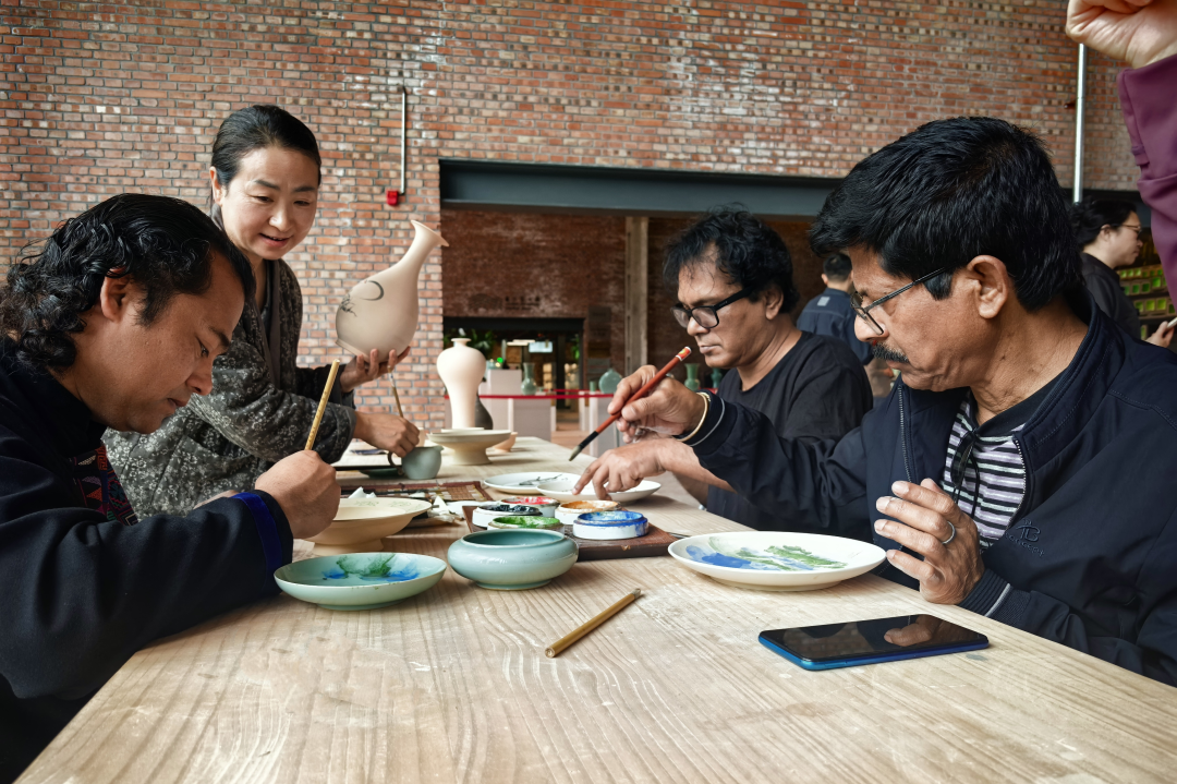 4月12日上午,“非遗正青春”艺术沙龙在龙泉望瓯·陶溪川火热开展,中孟两国艺术家围坐一堂,围绕文化建设、艺术创作、非遗传承等话题畅所欲言、深入交流,并携手共创艺术作品,用笔墨与匠心书写文化共鸣。