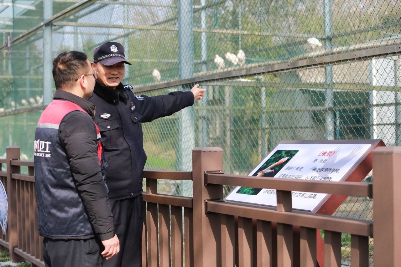 目前,基地工作人员正24小时监护每一枚朱鹮蛋的孵化。而下渚湖派出所的民辅警,也一如既往巡逻在湿地边,守护在这一抹珍贵的“朱红”身旁。