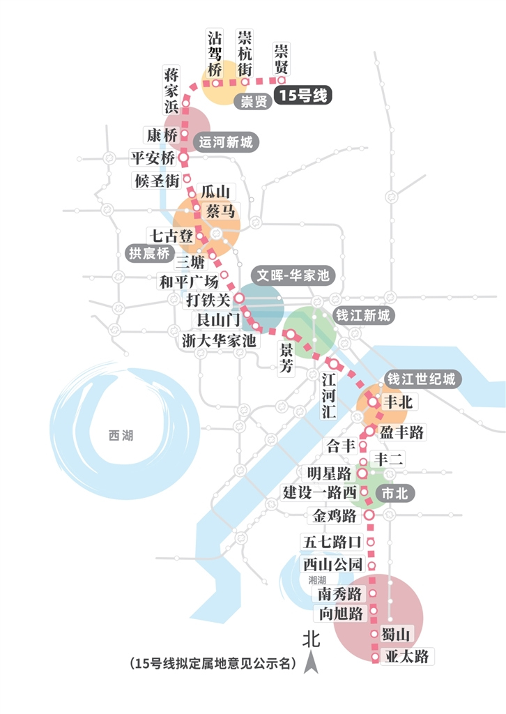 涵盖金鸡路站等,是萧山政治、商业、文化中心,萧山中心城区。15号线可以强化这个板块与钱江世纪城、钱江新城的快速联动。