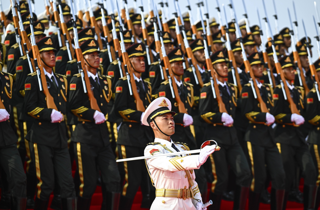 9月3日,纪念中国人民抗日战争暨世界反法西斯战争胜利80周年大会在北京隆重举行。这是国旗护卫队在行进中 图源:新华社