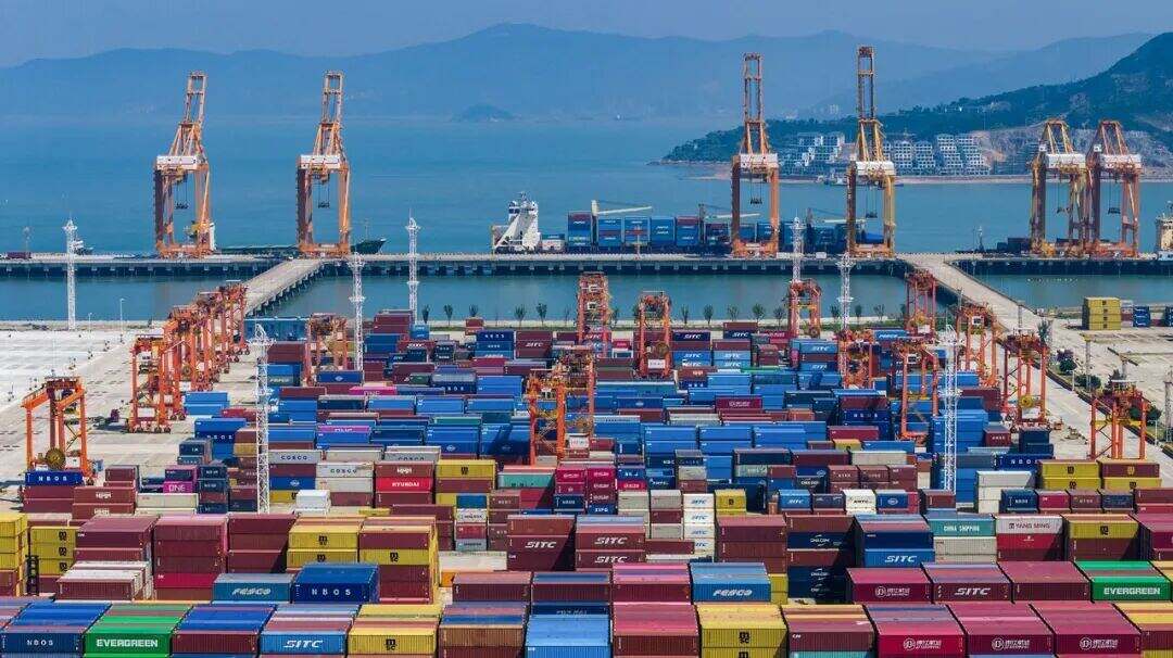 温州市洞头区状元岙港区,货轮在泊位上有序装卸作业 图源:潮新闻客户端