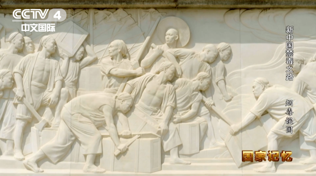 北京天安门广场的人民英雄纪念碑,碑座的四周镶嵌着十幅汉白玉浮雕,排在第一幅的就是《虎门销烟》 图源:“CCTV国家记忆”微信公众号