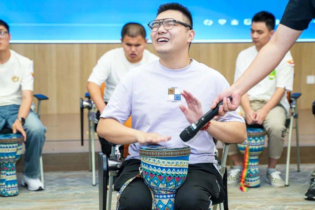 观影结束后,视障观众正体验“量身定制”的非洲鼓教学课