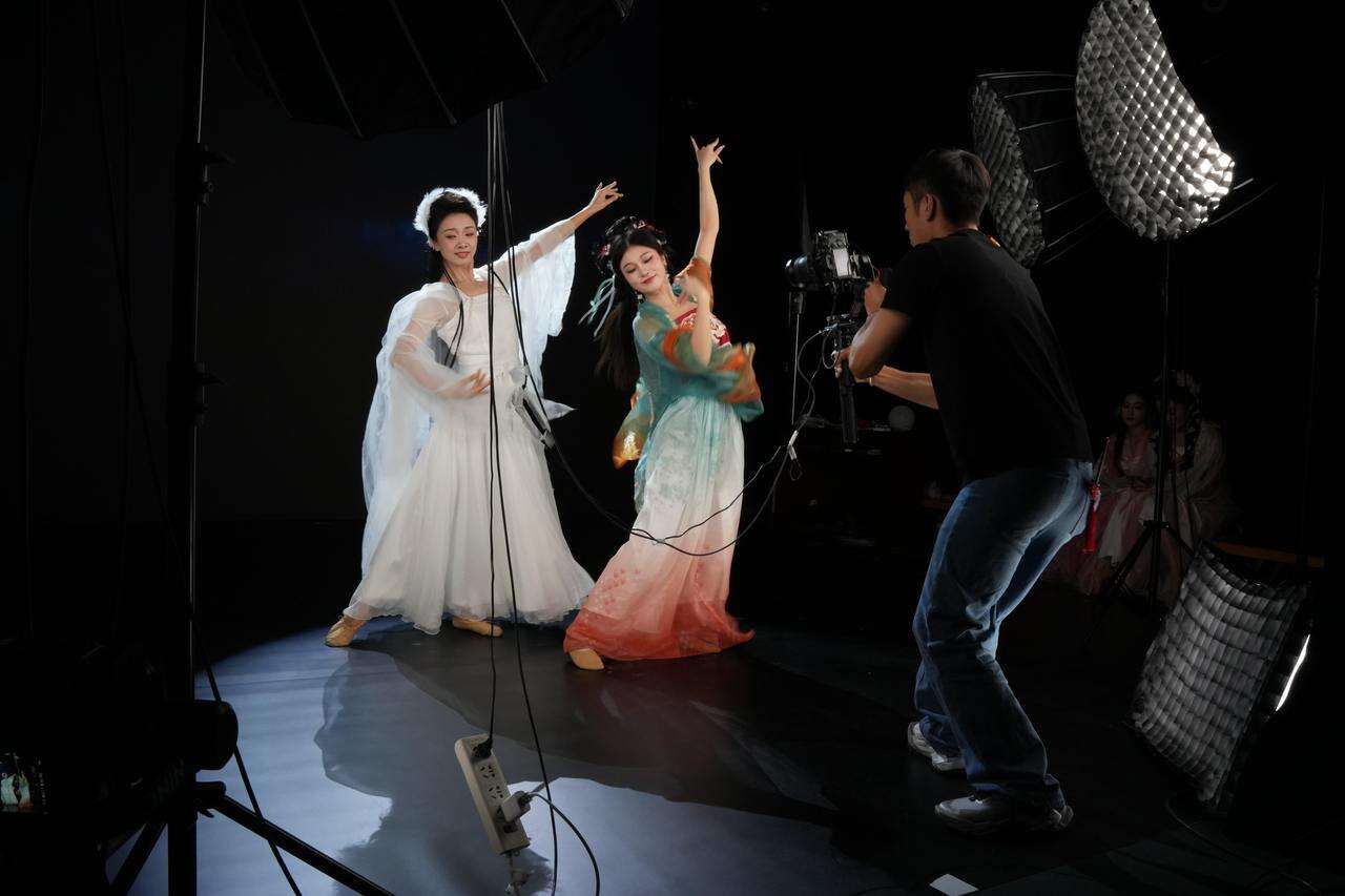 置景精美的直播间内,专业舞者足尖轻点、身姿优雅,固定机位和摇臂精准协作,捕捉聚光灯下的每个灵动瞬间。与此同时,在方寸屏幕之外,无数观众为这一场古风团播发出连连赞叹。